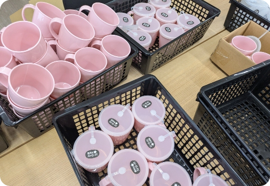 主な内容は、コップの検品・袋詰め・梱包といったシンプルで取り組みやすい作業です。